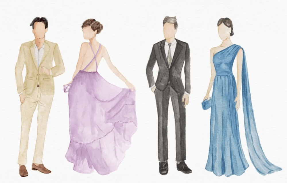 Acessórios: Bolsas de mão (clutches), joias discretas e um sapato de salto alto são essenciais para complementar o visual.